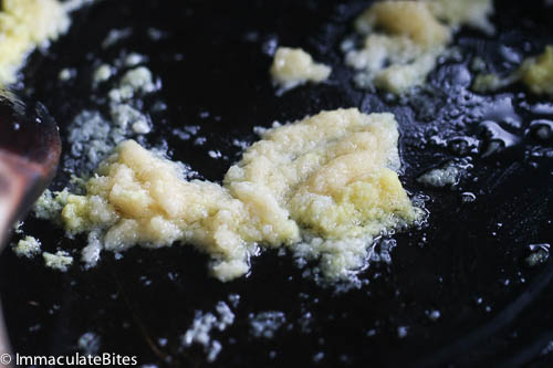 - Heat up a saucepan or work to medium heat (the oil should not too hot) with about 1 tablespoon of oil, and then add ginger and garlic sauté for about 1-2 minutes making sure the garlic does not burn.