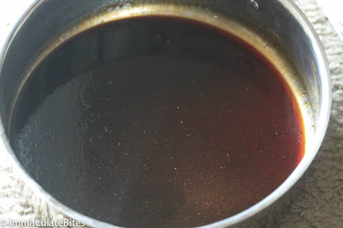 - Stir in soy sauce, water, and sugar to the mixture. Bring to a boil and simmer for about 3 minutes, remove from heat. Set aside