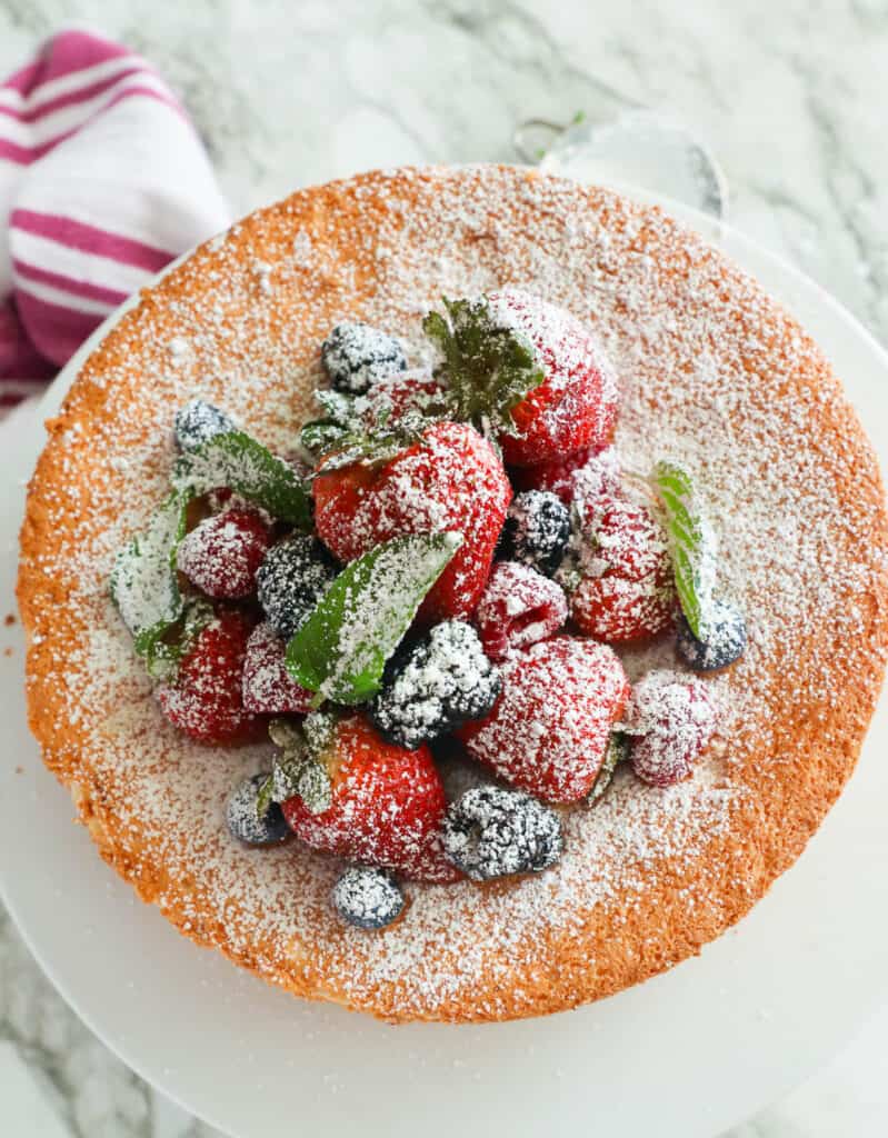 The recipe is delicious! Normally I don’t change a recipe but this time I had no choice. I’m at 6,500′ altitude and had to adjust for high altitude. I used 2 cups regular flour, 1/4 tsp ea of baking powder and baking soda, 2 XL eggs, 3/4 cup sugar, and a scant 1/3 cup of milk. The oven was 350° for 40 min then 325° for 10 more minutes for glass bread pan and 15 more minutes for a pottery bread pan. They both turned out perfect. I will make this again. When I get to Ohio where it is near sea-level I’ll make it with your measurements! Thanks for the recipe.