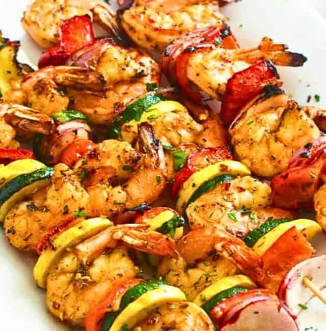 My juicy grilled shrimp kabobs marinated in amazing spices and fresh herbs with vibrant, flavorful veggies. This quick dinner recipe is one explosive yet fast, easy, busy weeknight meal. And easily customized is always a win-win!