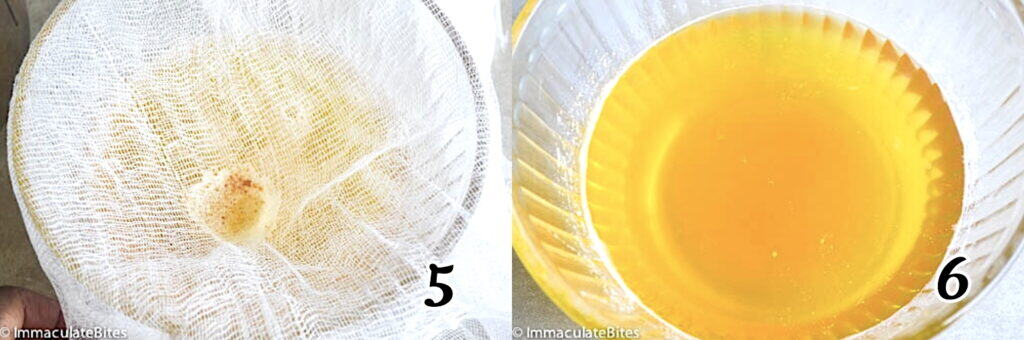 - Pour it through a cheesecloth or sieve to remove the milk solids. (Photo 5)