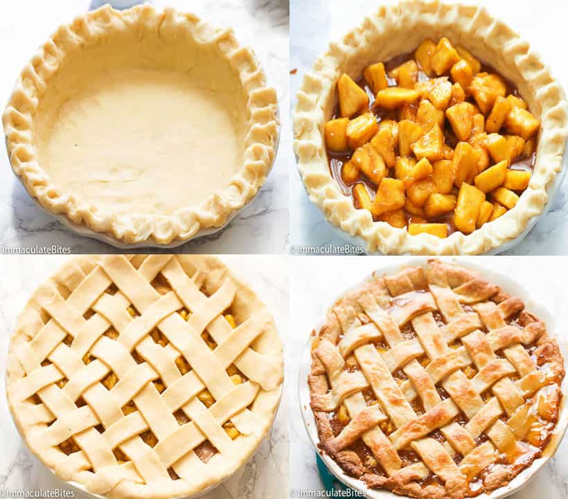 - Assemble – Pour the filling into the prepared pie pan and decorate it with pie crust strips. Lightly brush with egg wash. (Photos 10-12)
