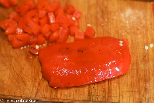 You can buy store-bought roasted red bell peppers or roast your own. By the way, did you know that red bell peppers have more nutrients than green bell peppers (about nine times the amount of carotene)? Silly me, I thought it was the opposite—another bonus for this salad.