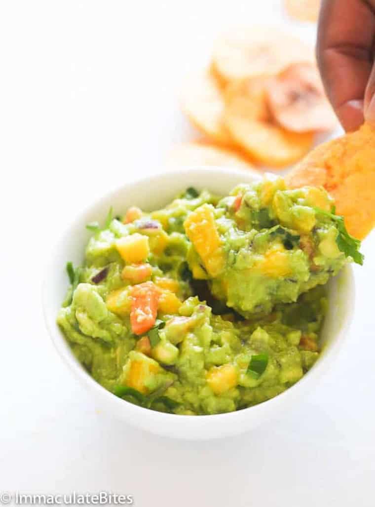 I make guacamole all the time but I love your tropical recipe. I really like the plantain chips.